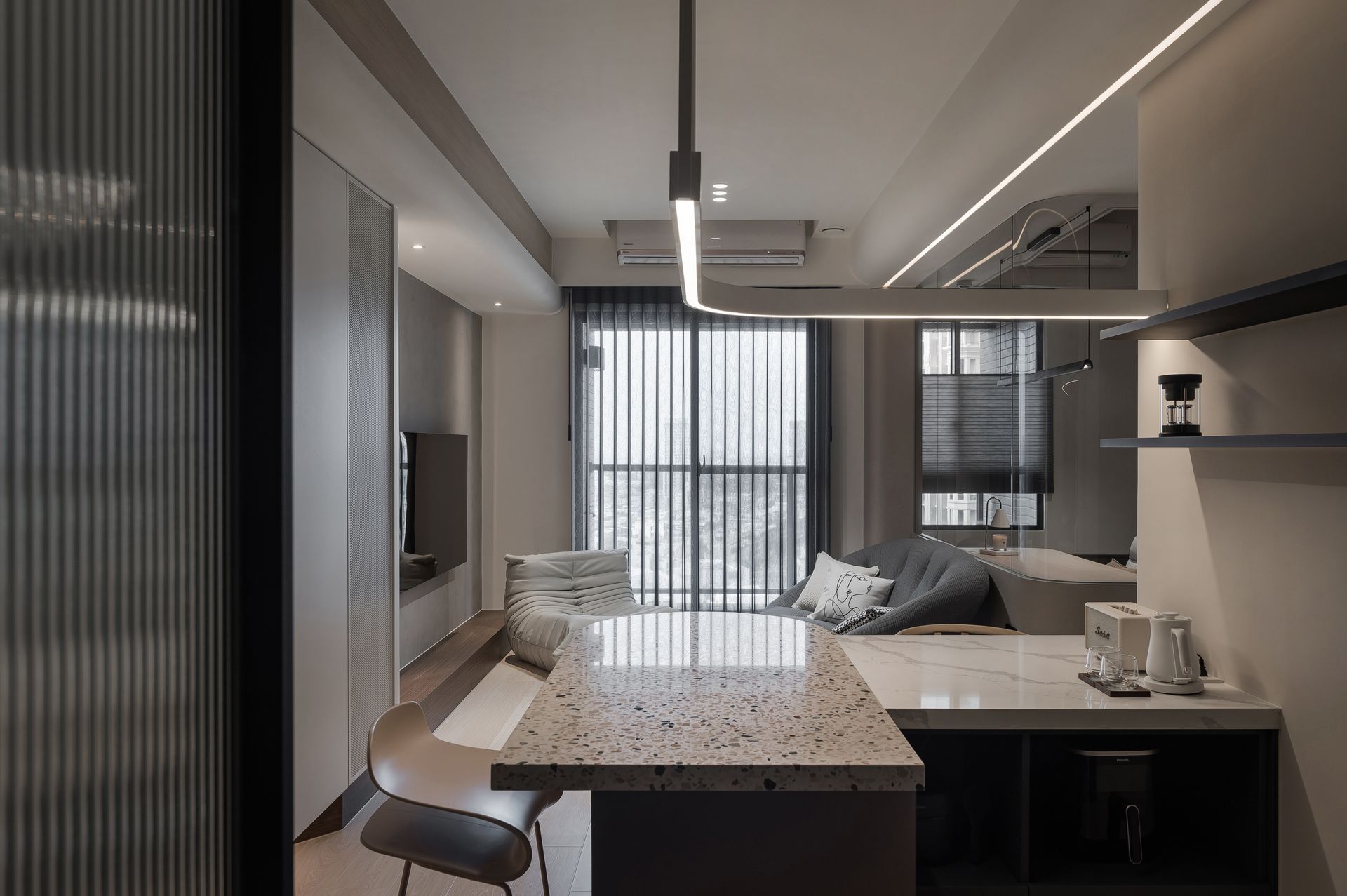 結束每天的忙碌後,踏進一個不趨於華麗反覆,講究層次、線條、幾何,處處彰顯著個人氣質與品味,回家是一種的享受。