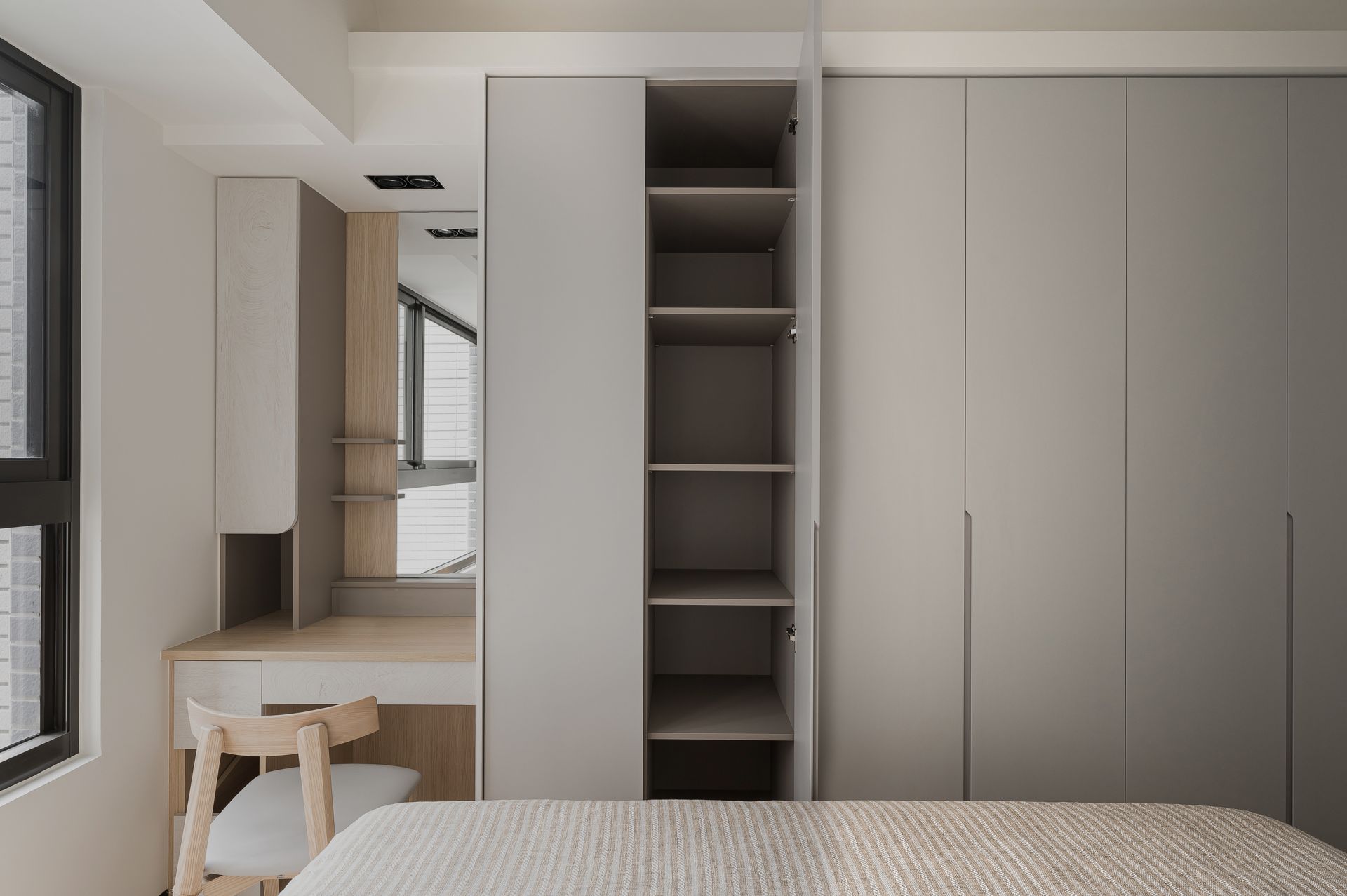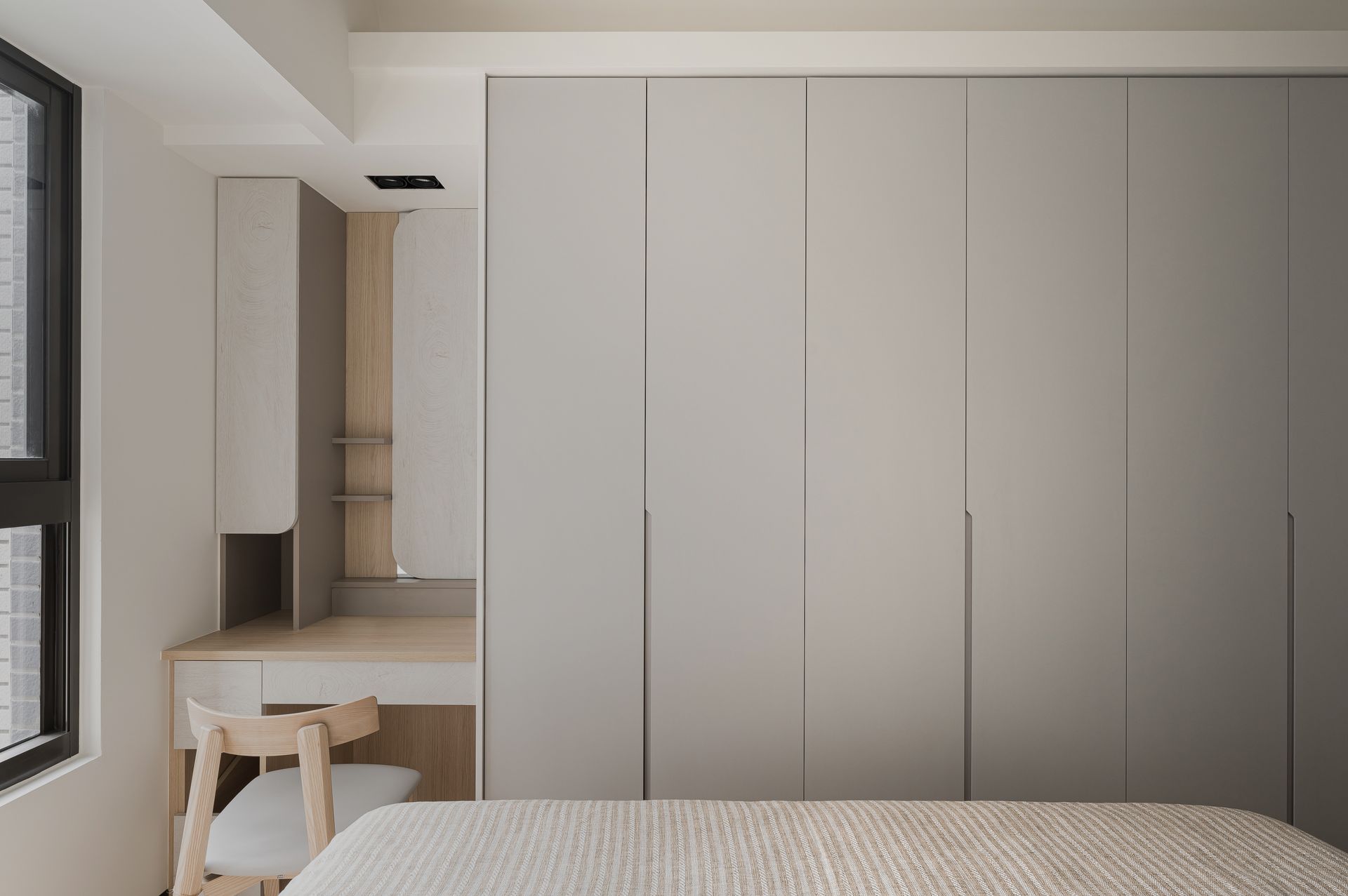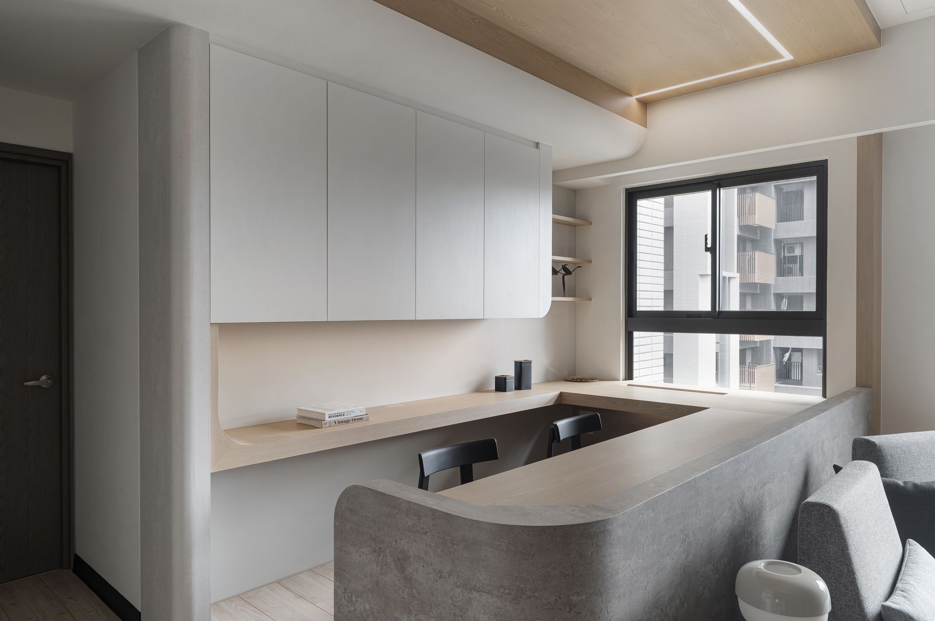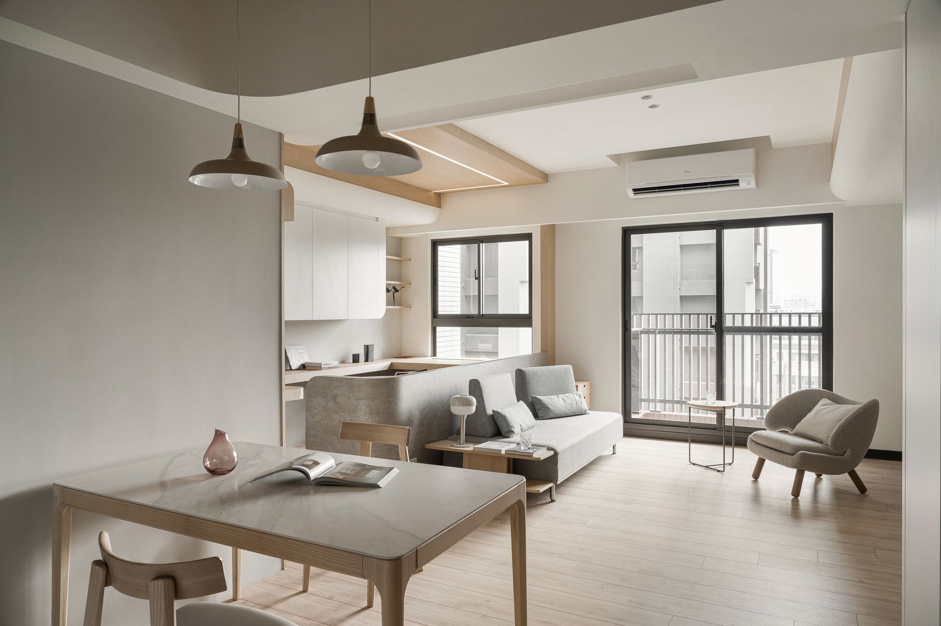 簡約設計鋪陳,奶灰色與木紋質感相融,營造寬敞感。