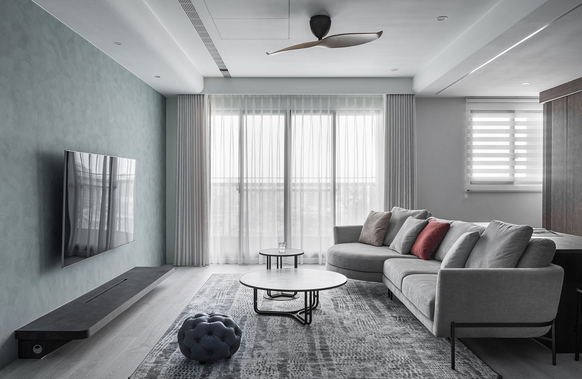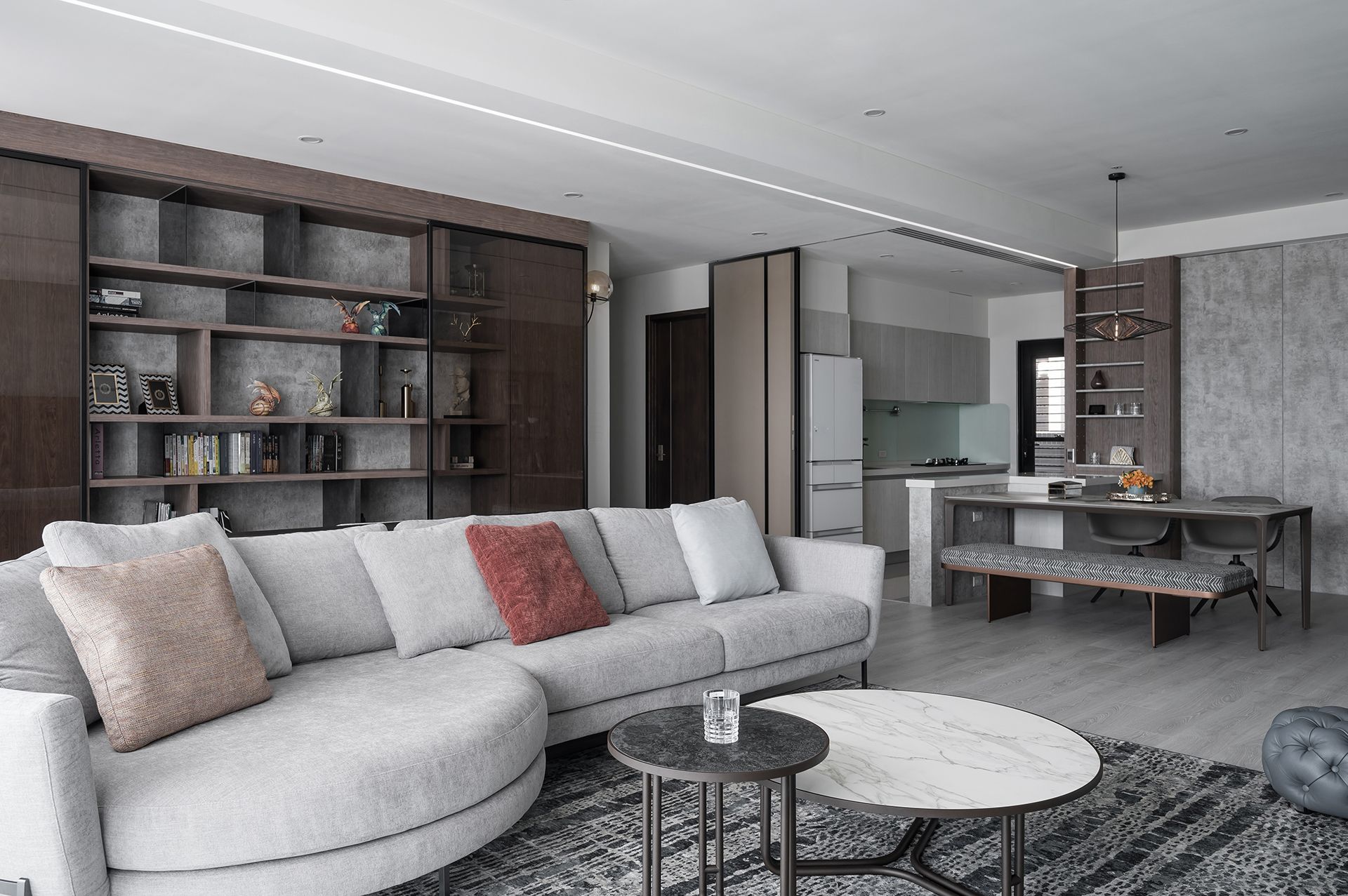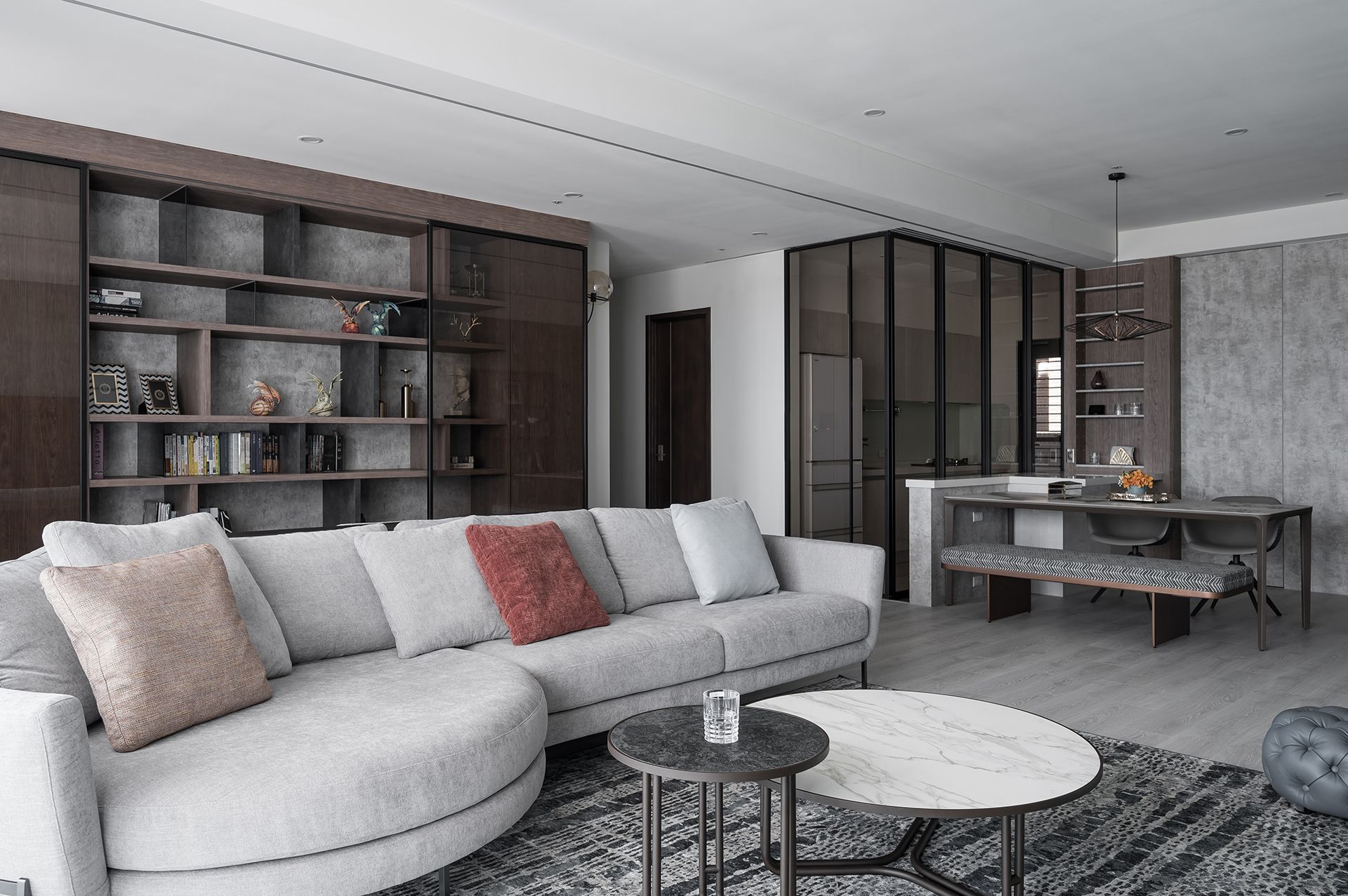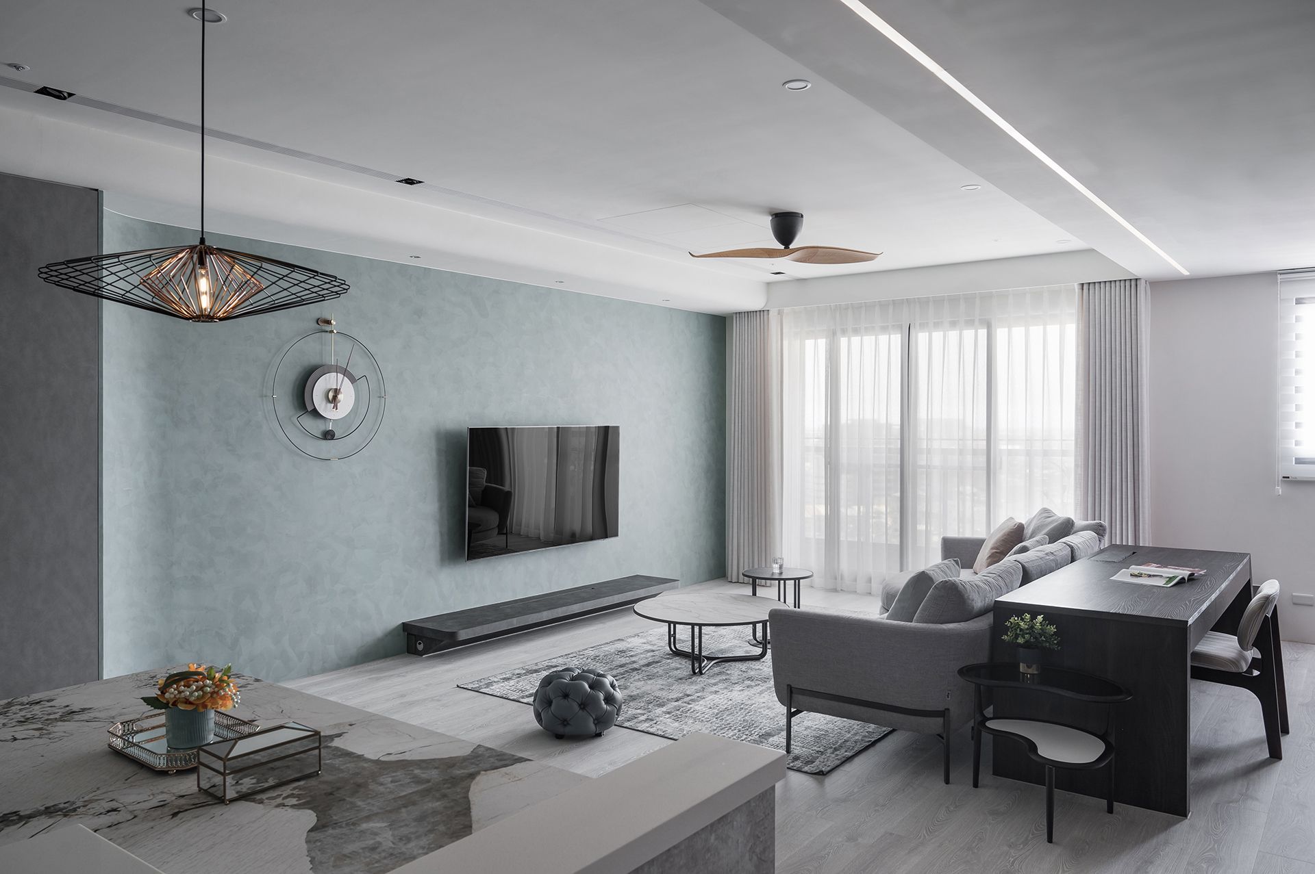 在書房、臥房、餐廳配置大容量收納空間,雜亂一掃而空,帶來清爽自在的舒心感。下班後,面對大自然色系的客廳主牆,躺在舒適柔軟的沙發上,最適合看電視、放空。想要聽音樂、閱讀、上網時,待在沙發後面的大型書桌前,就能盡情放鬆。在不同場域,都能舒緩壓力,隨時為身心充電。