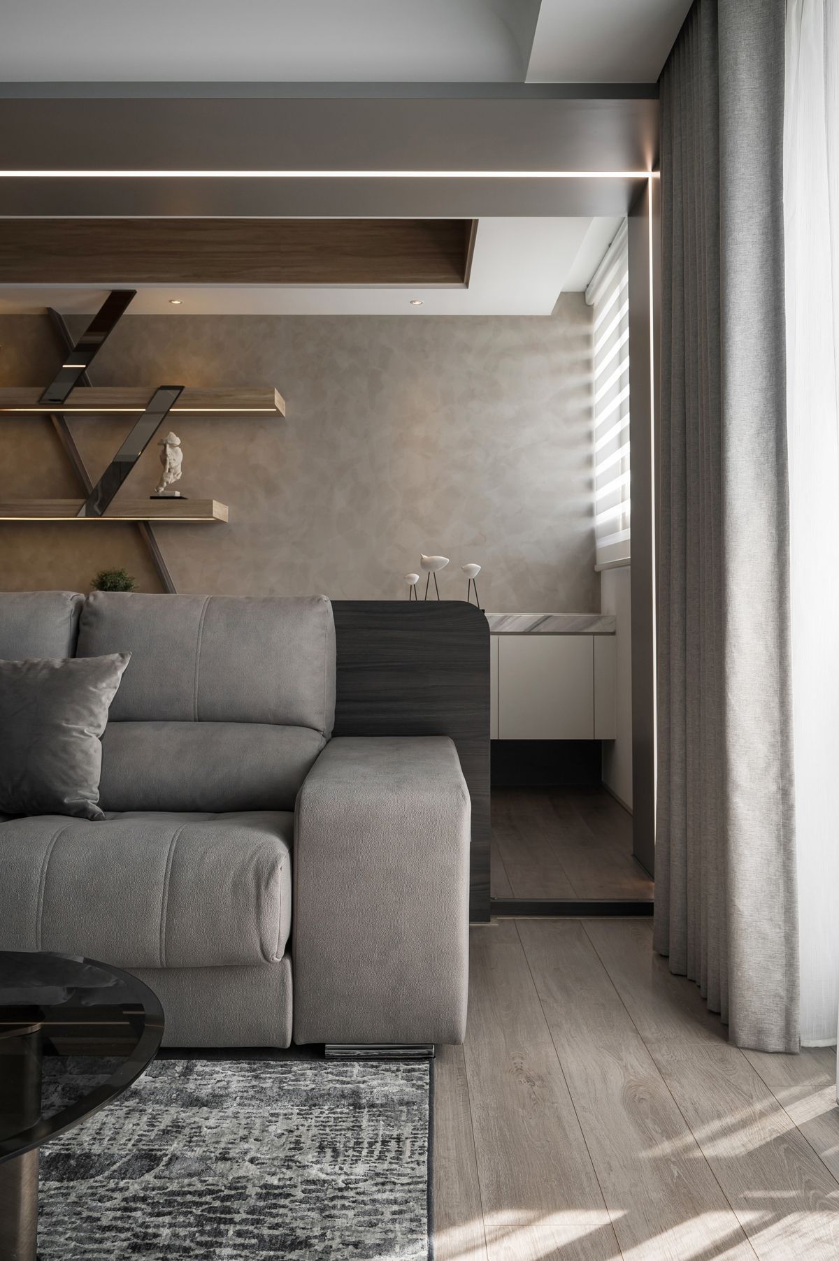 為使空間視野最大化,我們保持開放式場域,讓玄關、餐廳、客廳、書房的動線一氣呵成,收攬光景心曠神怡。後注入不同色彩質調,以呈顯不同立面表情,整體視覺看似連貫,卻隱約有別,讓各區域間保有獨立性,形塑獨特的風格情境。如同步入飯店大廳,一區一景,每一步都是驚喜,優雅沉靜而有餘裕。